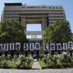 se reúnen cerca del Edificio Federal Bishop Henry Whipple, que alberga